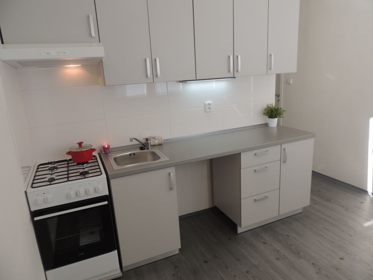 Byt disponuje kuchyňskou linkou s kombinovaným sporákem.