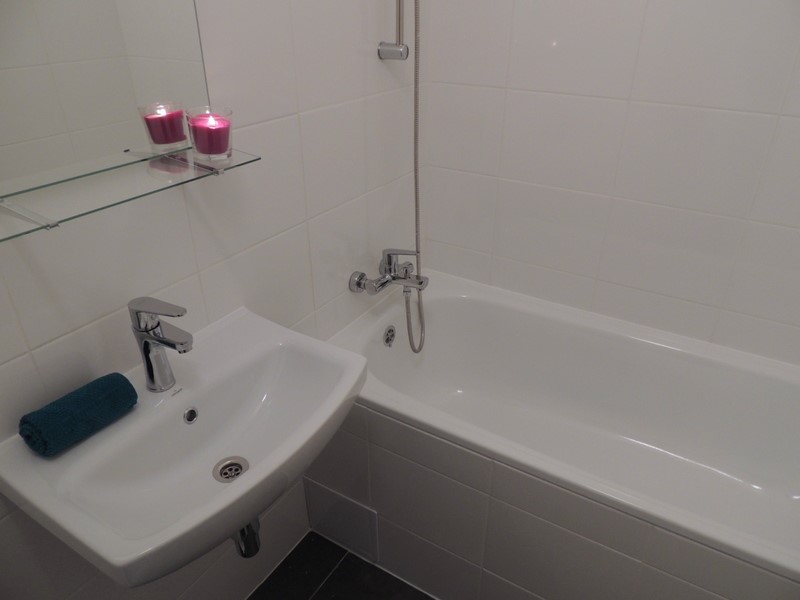Byt se nachází v 3. patře z 12. podlažního zateplenoho panelového domu. Byt prošel rekonstrukcí a má vyzděné jádro, podlahy, rozvody, omítky, interiérové dveře. Koupelna s vanou a umyvadlem, toaleta je odděleně.