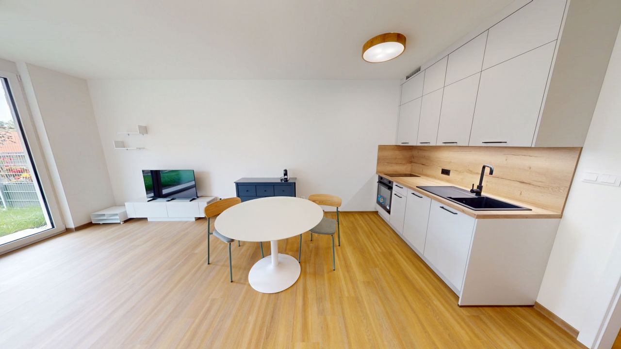 Byt je plně vybavený, stačí jen přinést si osobní věci a můžete bydlet.